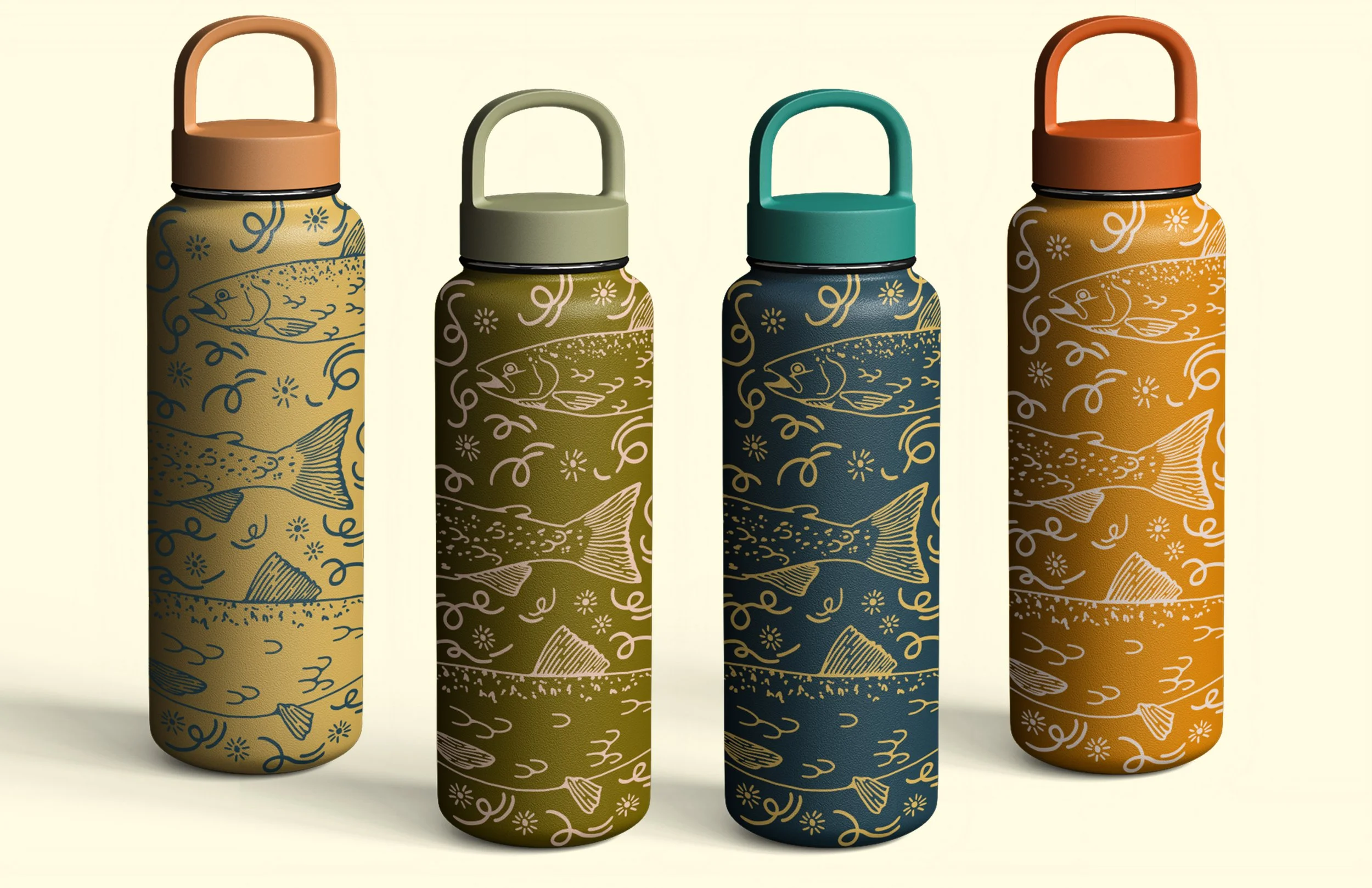 Detailed illustrated reusable water bottles to spark conversations about sustainability. Inspired by aspects of the earth’s ecosystems and a simple illustration that allows multiple color schemes, it’s a wonderful substitution for plastic water bottles.