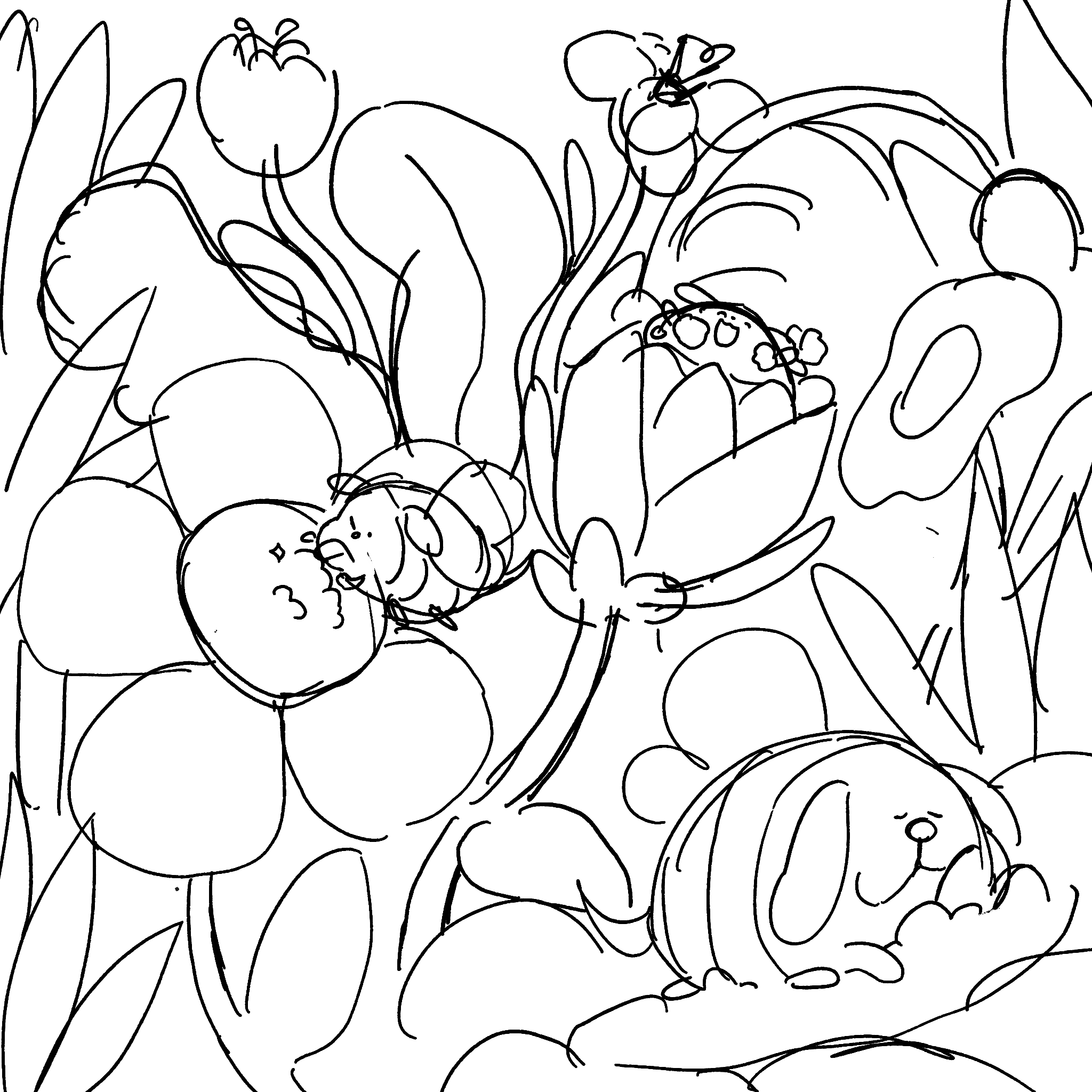 Aiming to explore simple shapes of organic plants, it also allowed for various hierarchal perspectives between each bee presented through out the illustration.